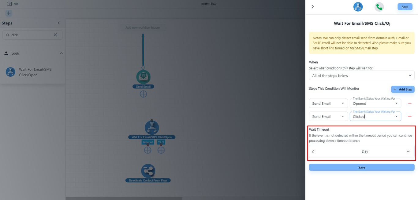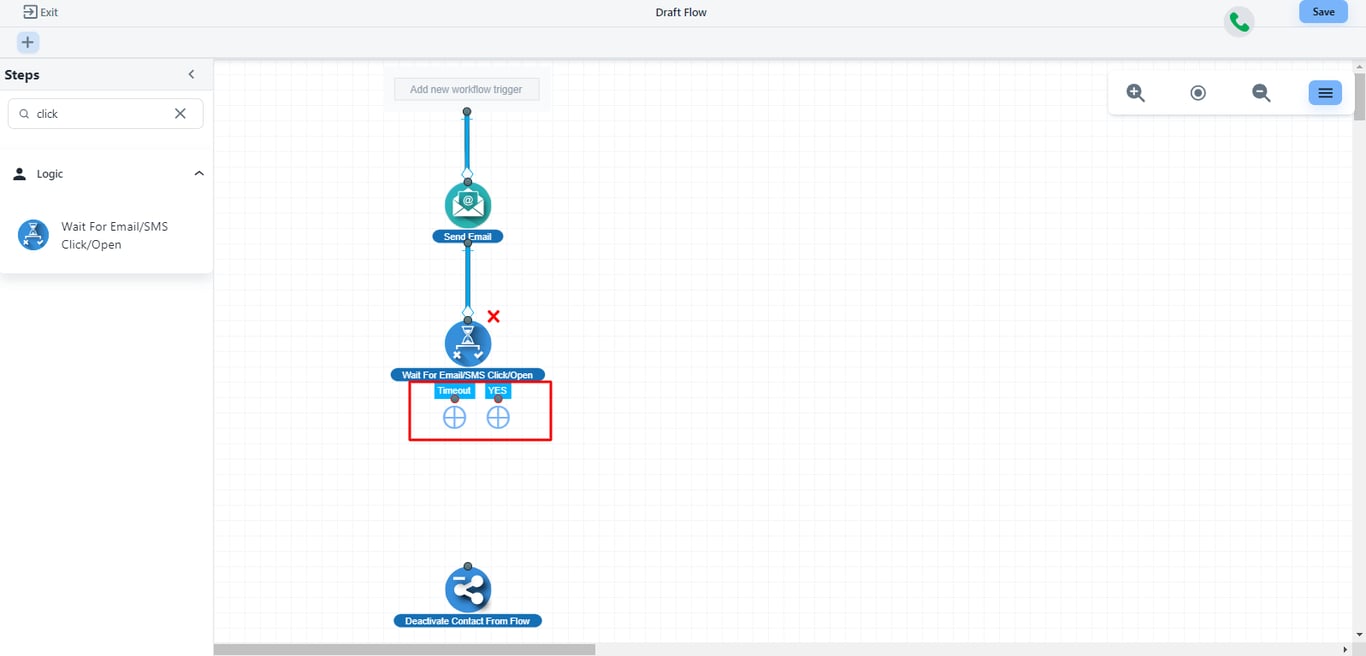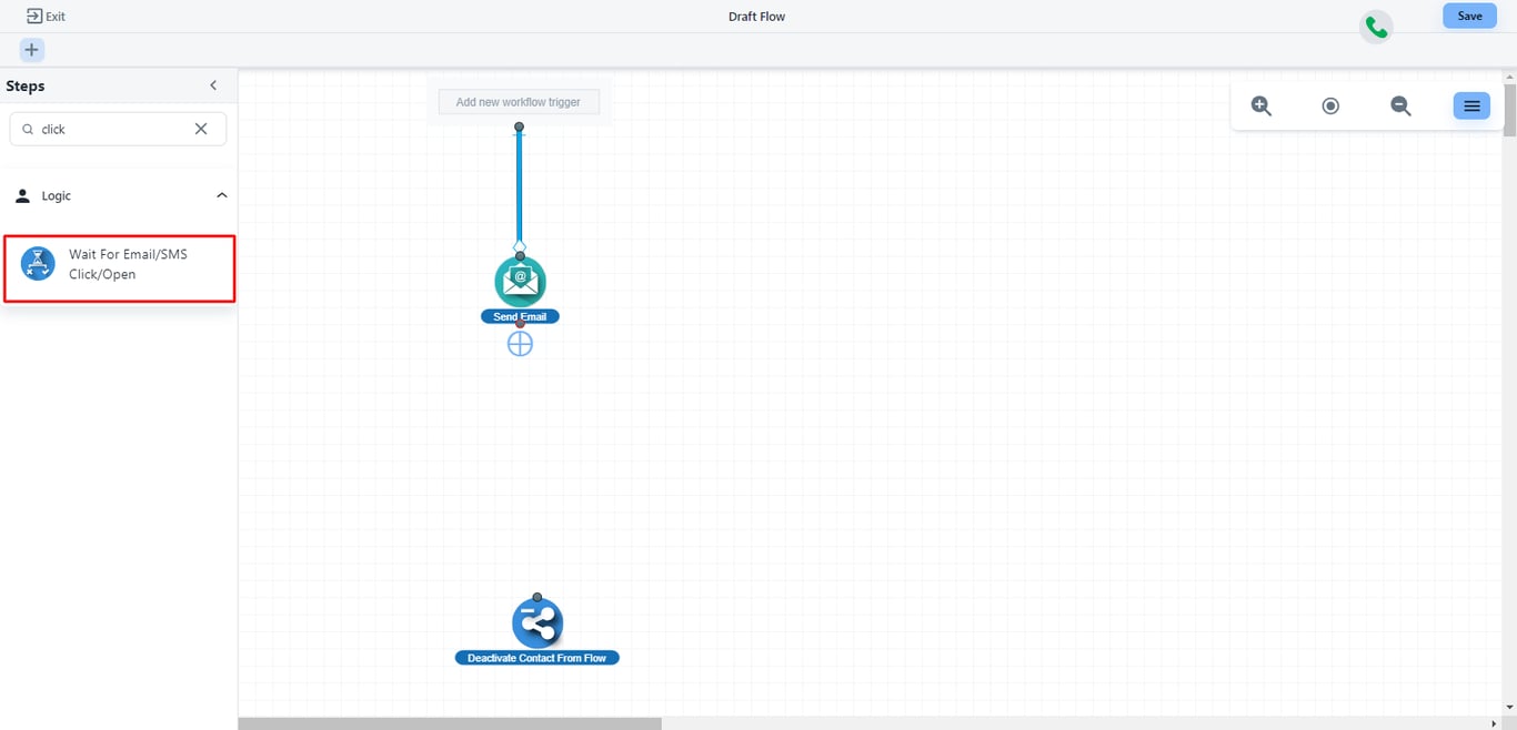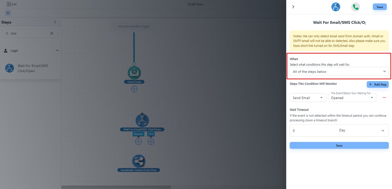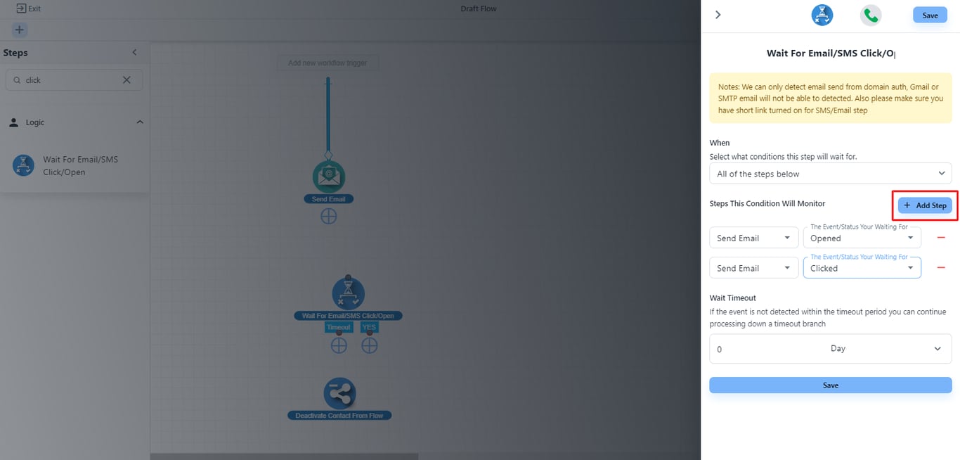 Now, add a Wait For Email/SMS Click/Open step in your flow: