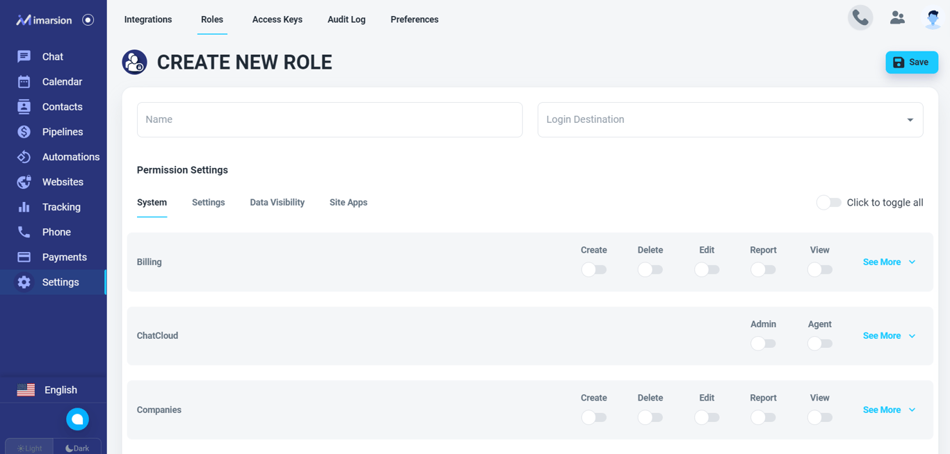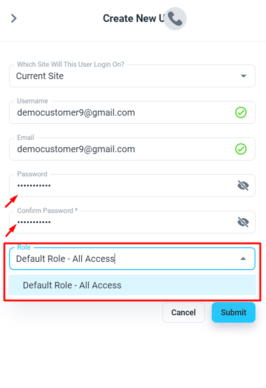 💡 No need for this step if you want to provide users with full access to your account. Please use the ‘Default Role - All Access’ .